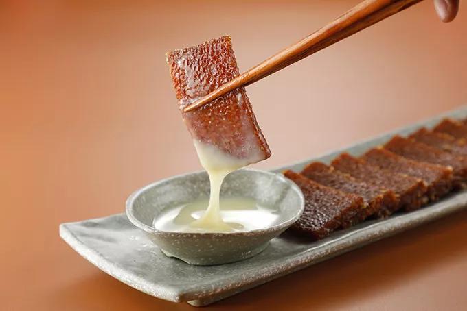 这道菜原本是凯里的特色,WAWA家更是在原有基础上有所创新。精选优质糯米,新鲜黄豆与冰晶糖完美融合,切至成片,粑片呈金黄色。于遵义地区黄糕粑是走亲访友、家人团聚、过年过节的必备标志性食品,黄糕粑用竹笋壳包装成型,采用两张竹笋壳交叉成十字型将粑体包成小块正方型,其色泽晶滢黄润、味道清香柔软,经蒸煮、油炸、煎炒、至绵软,是营养丰富的主副食品。极具创意与食膳之美。