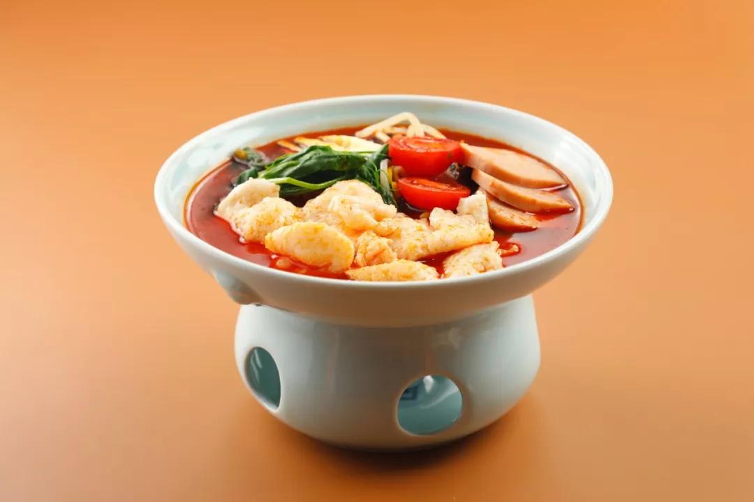 将新鲜活鱼、番茄下入锅中,掺入白醋作为提味。鲜鱼肉于白汤热汽中加以翻煮至绵软肥嫩,丝丝滑肉间掺杂着高汤浓郁的清香,番茄伴随着香醋于舌尖勾勒出淅沥酸爽,唇齿间裹挟着如此香滑酸爽。霎时,弄堂间滚滚醋香扑鼻而来……